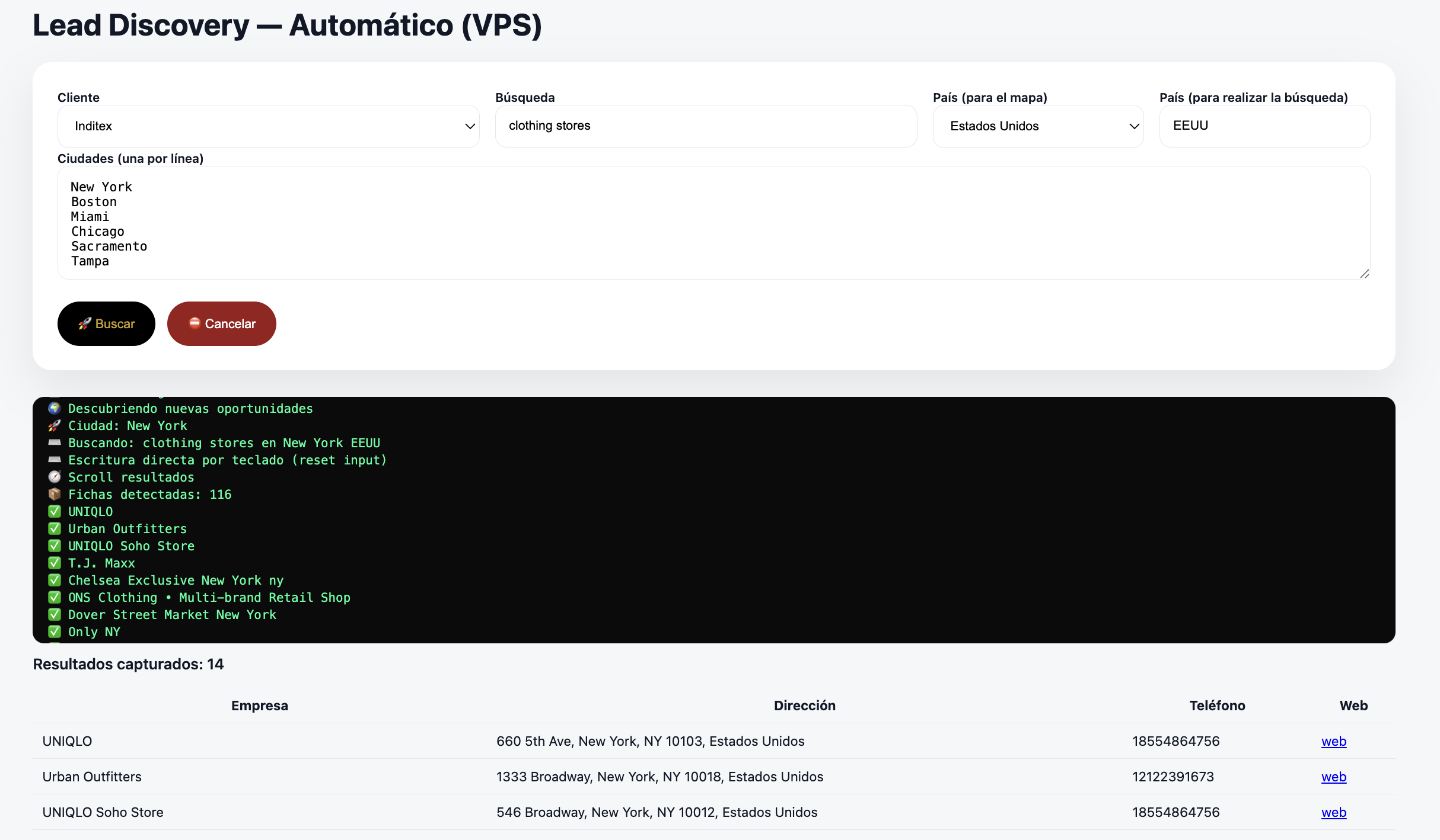 Exporting Cloud opera sobre una infraestructura tecnológica propia diseñada para localizar, filtrar y estructurar información empresarial por sector, país y zona geográfica. El sistema analiza de forma continua múltiples fuentes abiertas, identifica empresas activas y genera miles de oportunidades comerciales organizadas, listas para ser utilizadas por equipos de ventas, marketing y desarrollo internacional.